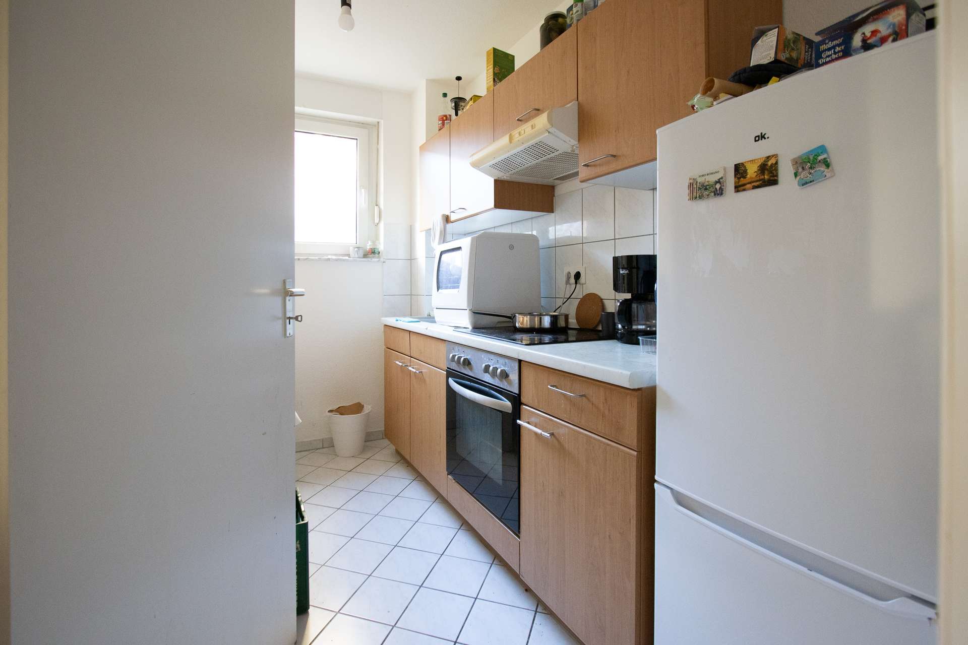 Die abgeschlossene Küche ist im Wohnzimmer integriert und mit einer Einbauküche ausgestattet.