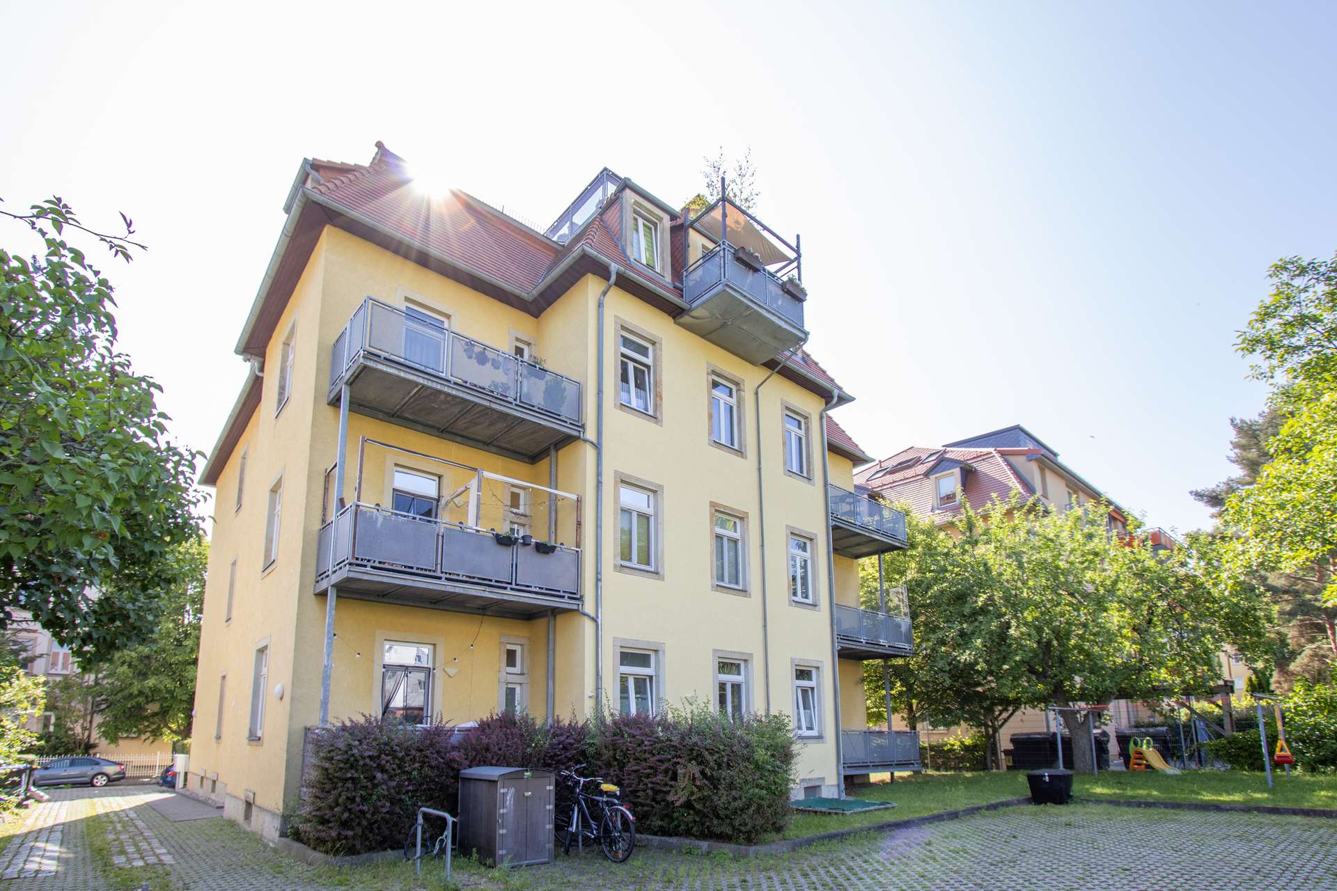 Für Freizeit und Erholung bieten sich zahlreiche Möglichkeiten: Der nahegelegene Bonhoefferplatz mit seinen Grünflächen sowie der beliebte Südpark und der Fichteturm sind schnell erreichbar und laden zu Spaziergängen, Sport oder einfach zum Entspannen ein. Auch das Elbufer und der Große Garten sind mit dem Fahrrad oder den Öffentlichen in kurzer Zeit erreichbar. Sporteinrichtungen, Spielplätze und kulturelle Angebote in Löbtau und den angrenzenden Stadtteilen runden das vielfältige Freizeitangebot ab.