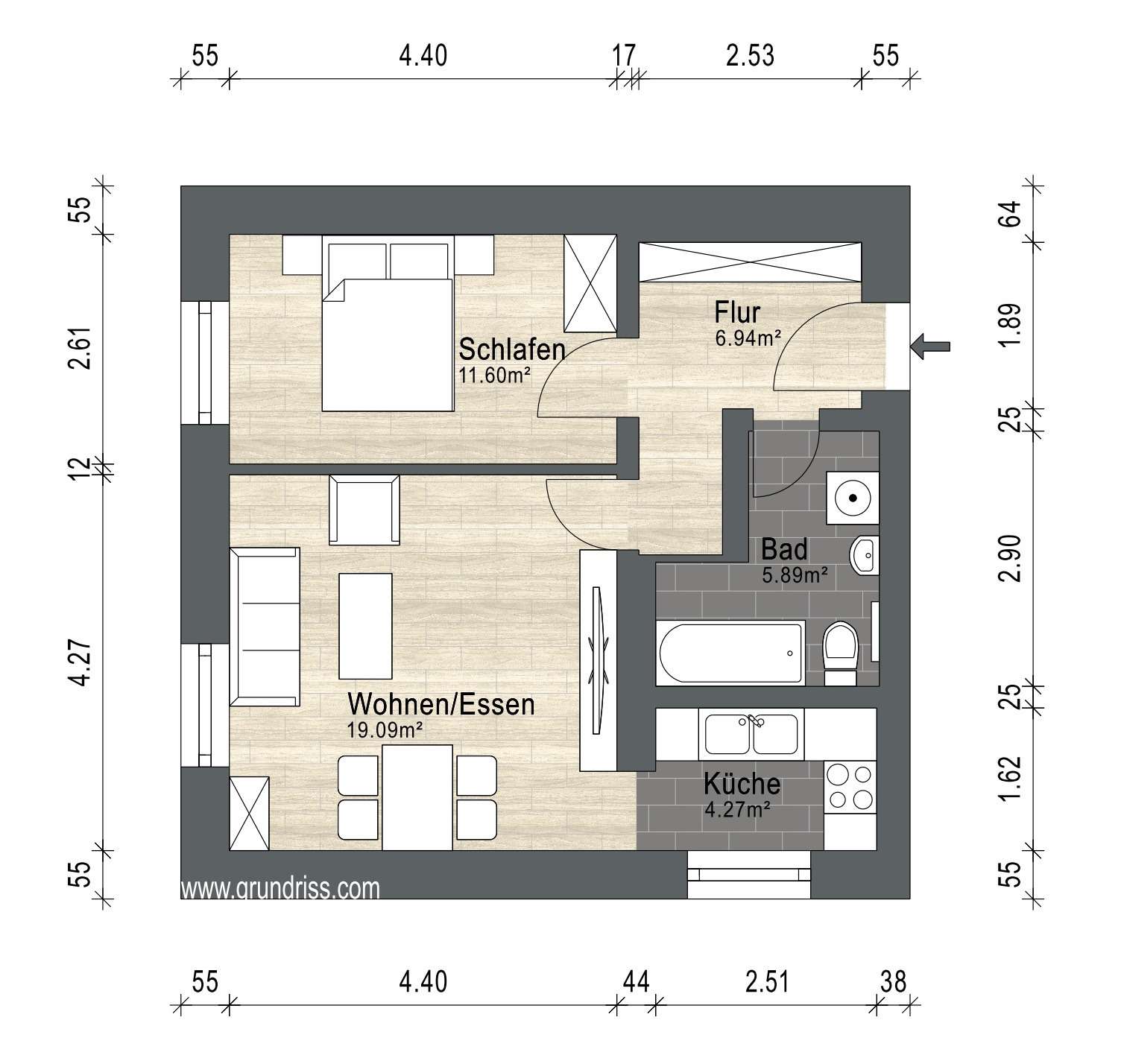 - Bad mit Wanne + WM-Anschluss