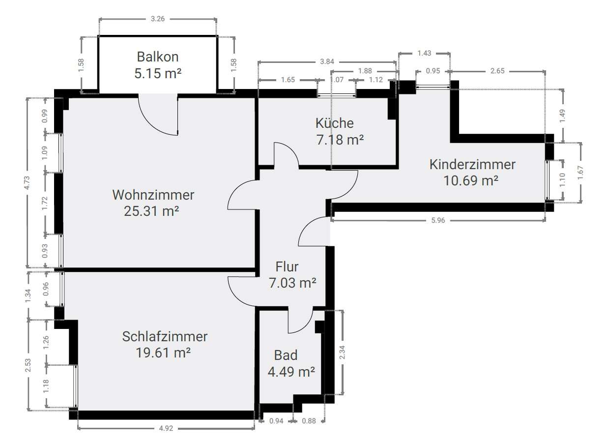 Die 77 Quadratmeter Wohnfläche verteilen sich auf insgesamt drei Zimmer - darunter zwei Schlafzimmer und ein Badezimmer, welches mit Dusche und Badewanne ausgestattet ist. Die Wohnung überzeugt insbesondere durch das großzügige Raumgefühl und die schönen Lichtverhältnisse aufgrund der Südausrichtung des Wohn- und Kinderzimmers. Ein Balkon lädt dazu ein, die warmen Sommerabende im Freien zu genießen. Als Lagermöglichkeit dient ein geräumiges Kellerabteil. Des Weiteren steht den Hausbewohnern ein gemeinschaftlich genutzter Fahrradraum zur Verfügung.