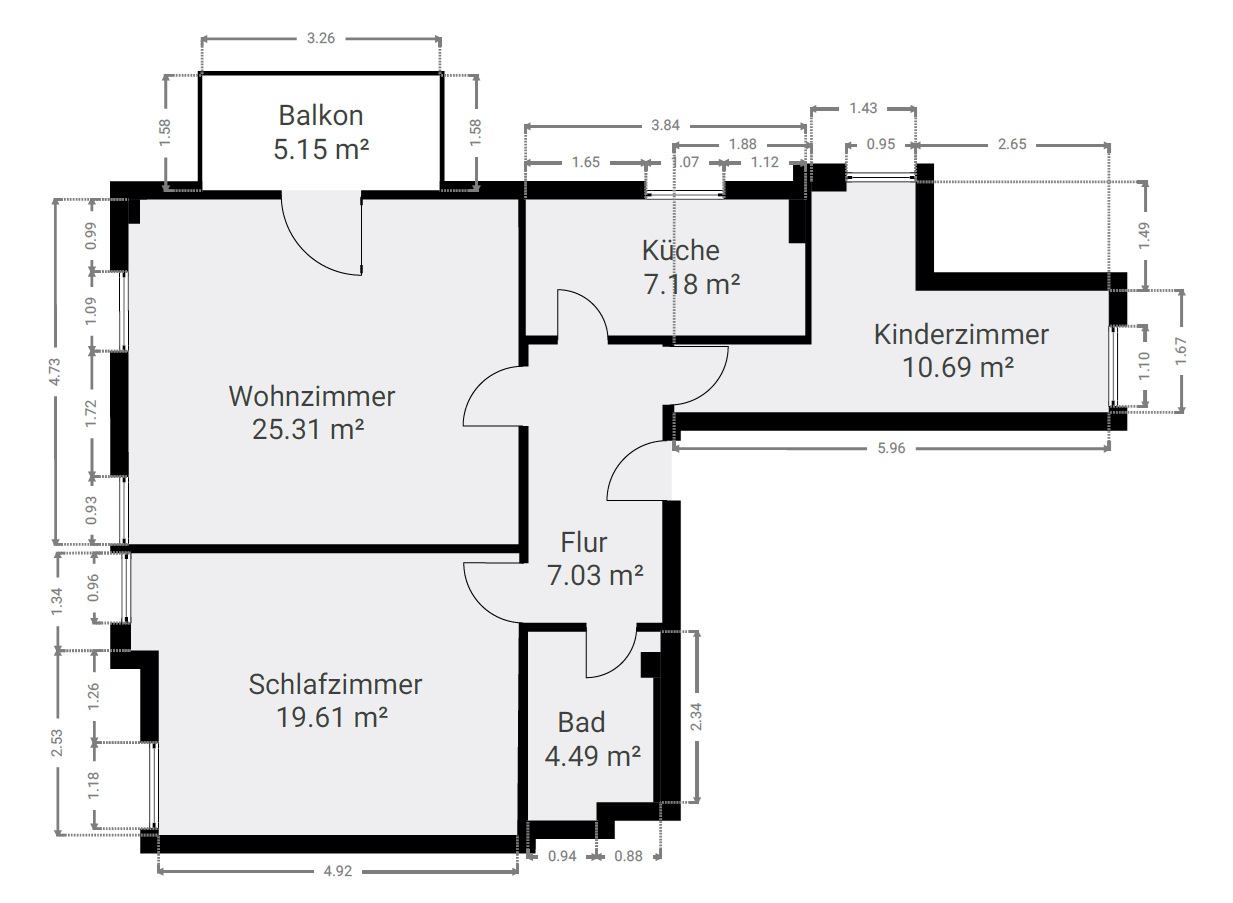 Die 77 Quadratmeter Wohnfläche verteilen sich auf insgesamt drei Zimmer - darunter zwei Schlafzimmer und ein Badezimmer, welches mit Dusche und Badewanne ausgestattet ist. Die Wohnung überzeugt insbesondere durch das großzügige Raumgefühl und die schönen Lichtverhältnisse aufgrund der Südausrichtung des Wohn- und Kinderzimmers. Ein Balkon lädt dazu ein, die warmen Sommerabende im Freien zu genießen. Ein Keller gehört ebenso zur Wohnung wie ein Außenstellplatz, der Ihnen die Parkplatzsuche erspart. Des Weiteren steht den Hausbewohnern ein gemeinschaftlich genutzter Fahrradraum zur Verfügung.