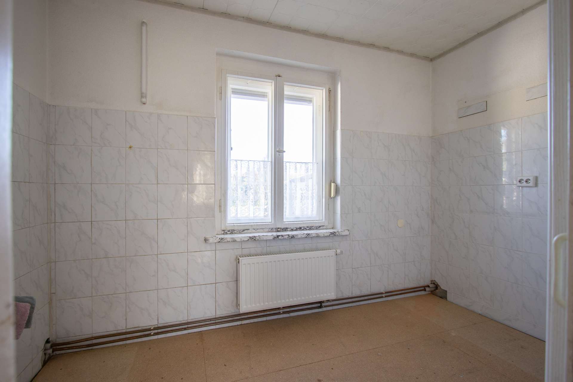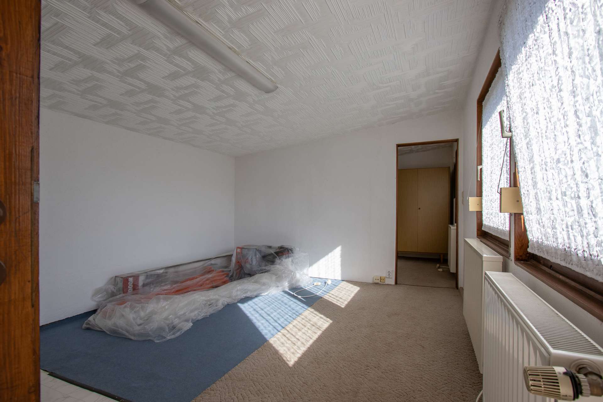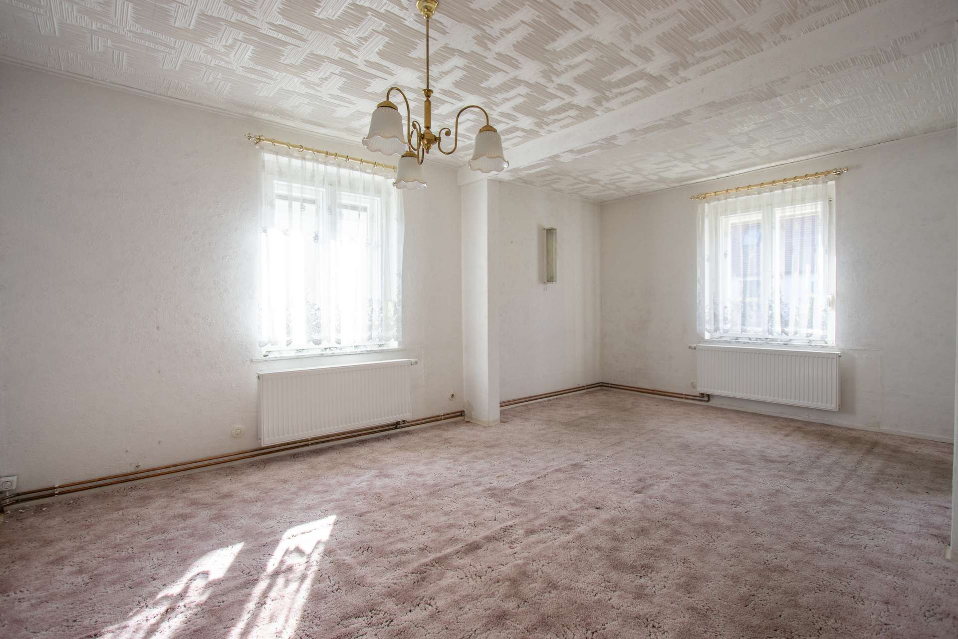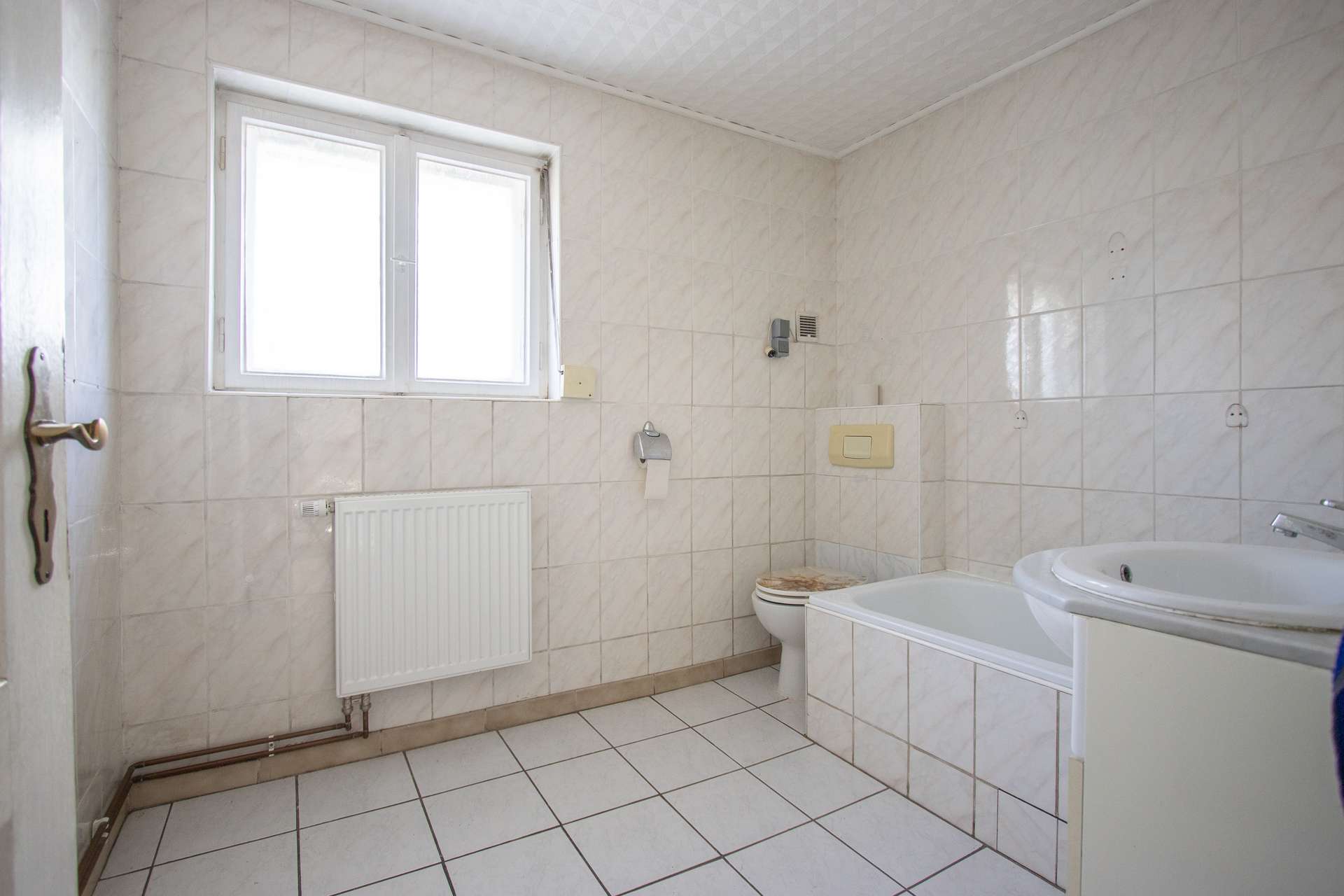 Das Haus betritt man über den angebauten Windfang, der aufgrund des großen Fensters einen hellen und einladenden Eingangsbereich bietet. Der Windfang ist gleichzeitig auch ein praktischer Platz für die Garderobe und Schuhschrank. Im Erdgeschoss befindet die zweckmäßig geschnittene Küche mit dem direkt angrenzenden Esszimmer, welches den Durchgang zum geräumigen Wohnzimmer darstellt. Das Wohnzimmer überzeugt ebenfalls mit sehr guten Lichtverhältnissen aufgrund der großen Fenster in Richtung Osten und Süden. Das Badezimmer wurde in den 90er Jahren saniert und ist mit einer Badewanne, WC und Waschbecken ausgestattet. Bei Bedarf wäre eine Vergrößerung des Badezimmers unter Einbeziehung des angrenzenden Werkstattraumes möglich.