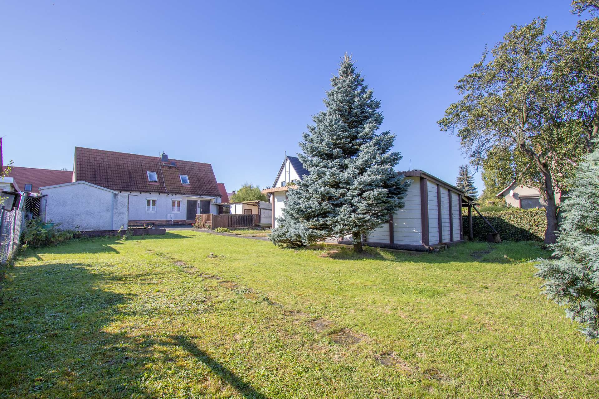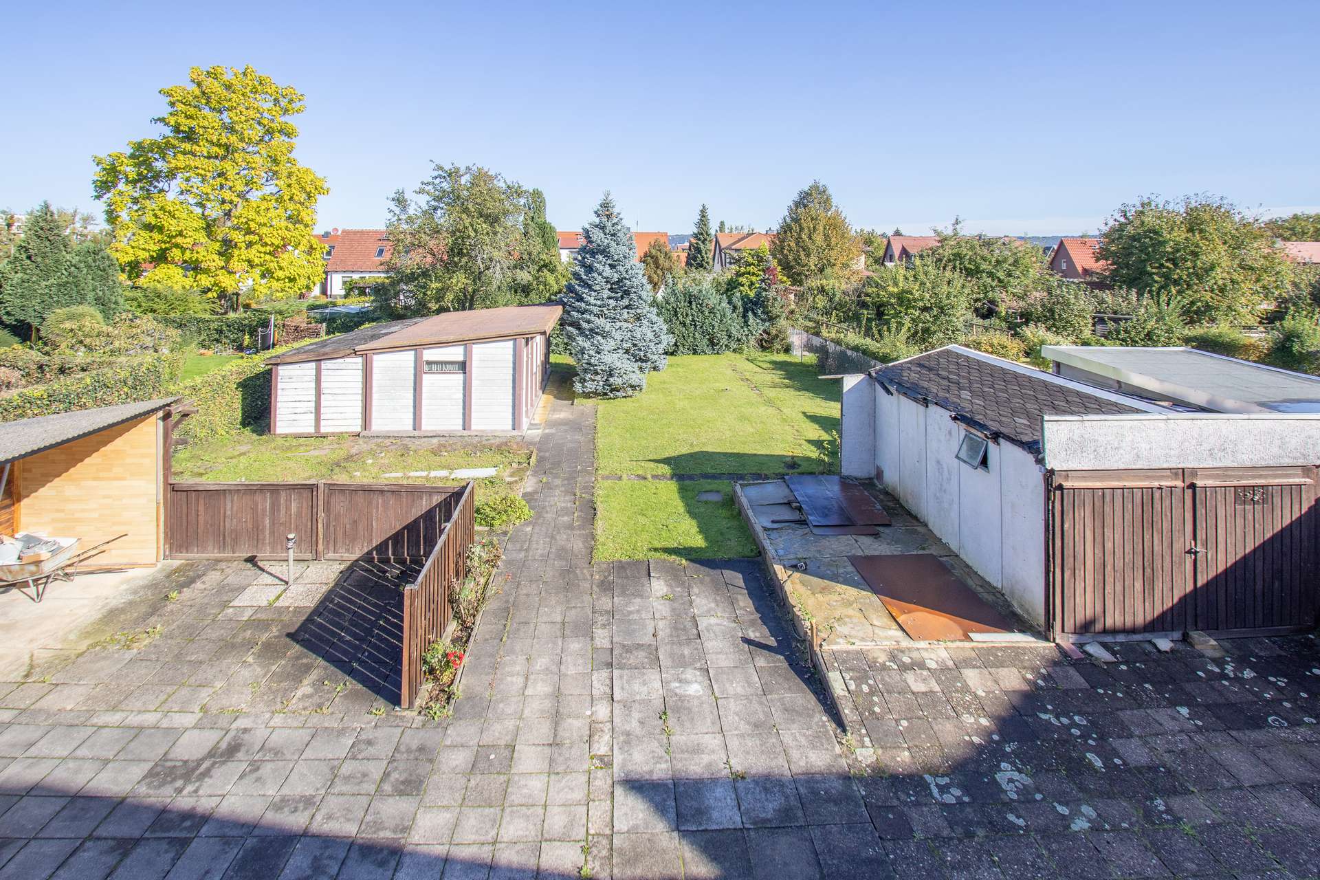 Ein Highlight ist zweifelsfrei das weitläufige und ebenerdige Grundstück, welches sich hinter dem Haus erstreckt. Hier ist es ruhig, sonnig und grün - der ideale Ort für Kinder zum Spielen oder für die Erholung vom stressigen Alltag. Das Grundstück besteht derzeit im Wesentlichen aus einer großen Rasenfläche und bietet die ideale Ausgangslage für Ihre eigenen Gestaltungsideen. Vielleicht ein Pool und eine schöne Terrasse? Platz dafür wäre auf jeden Fall ausreichend vorhanden. Derzeit ist das Grundstück neben dem Wohnhaus mit einem massiven Gartenhaus aus dem Jahr 1995 und einer Garage sowie einem Geräteschuppen bebaut.