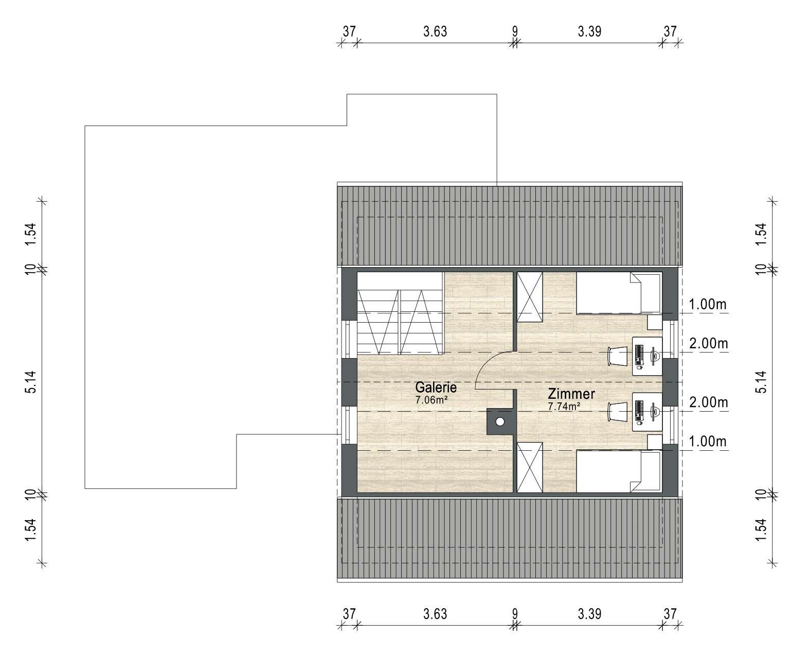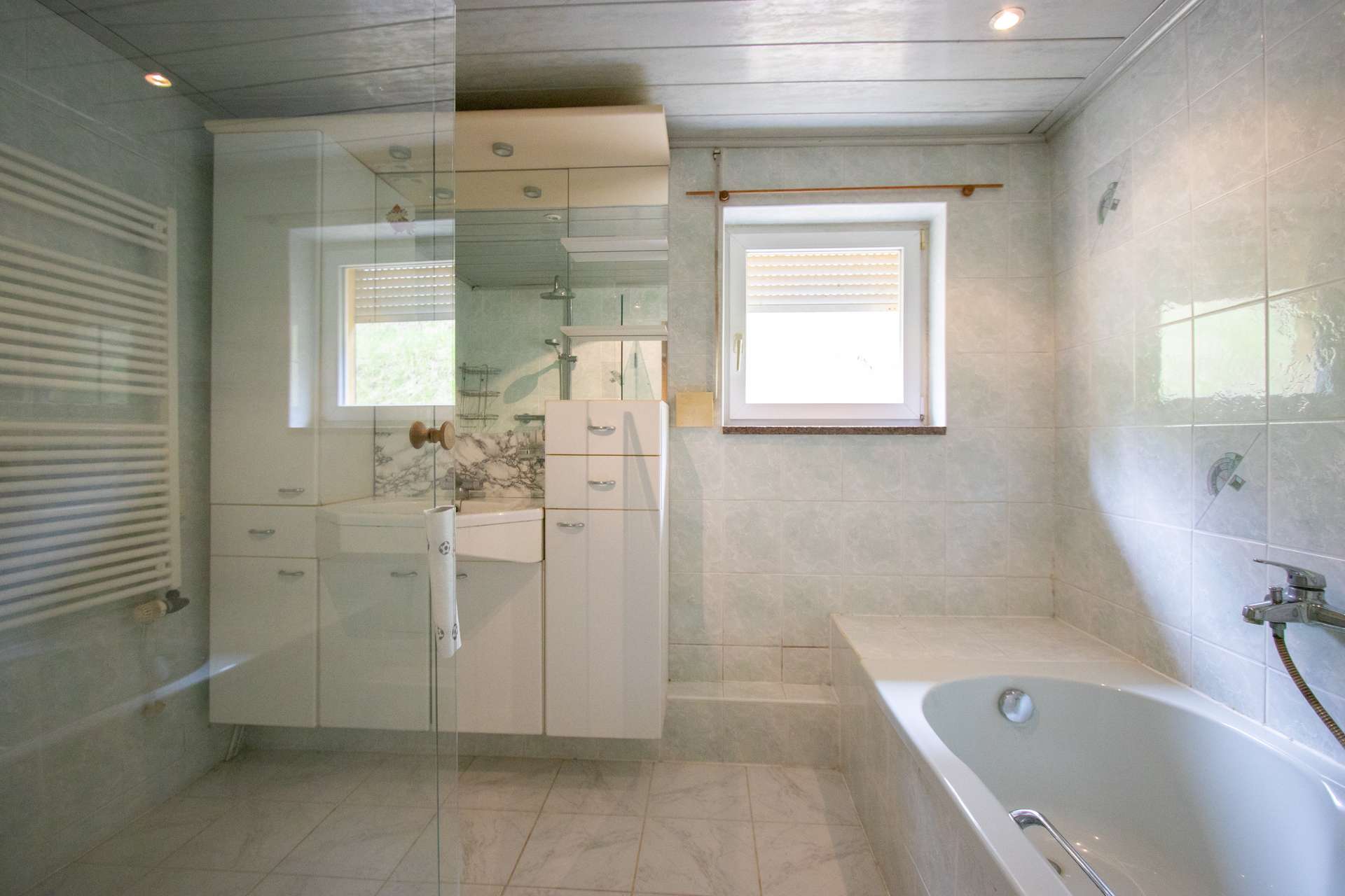 Das Obergeschoss kann als eigenständige Wohnung genutzt werden, da es auch hier eine Küche sowie 2 Schlafzimmer und ein großes Wohnzimmer mit angrenzendem Südbalkon gibt. Das Badezimmer im Obergeschoss ist mit einer Badewanne und einem WC ausgestattet. Der ausgebaute Dachboden bietet 2 weitere Zimmer, die z.B. als Kinderzimmer oder Hobbyraum genutzt werden können.