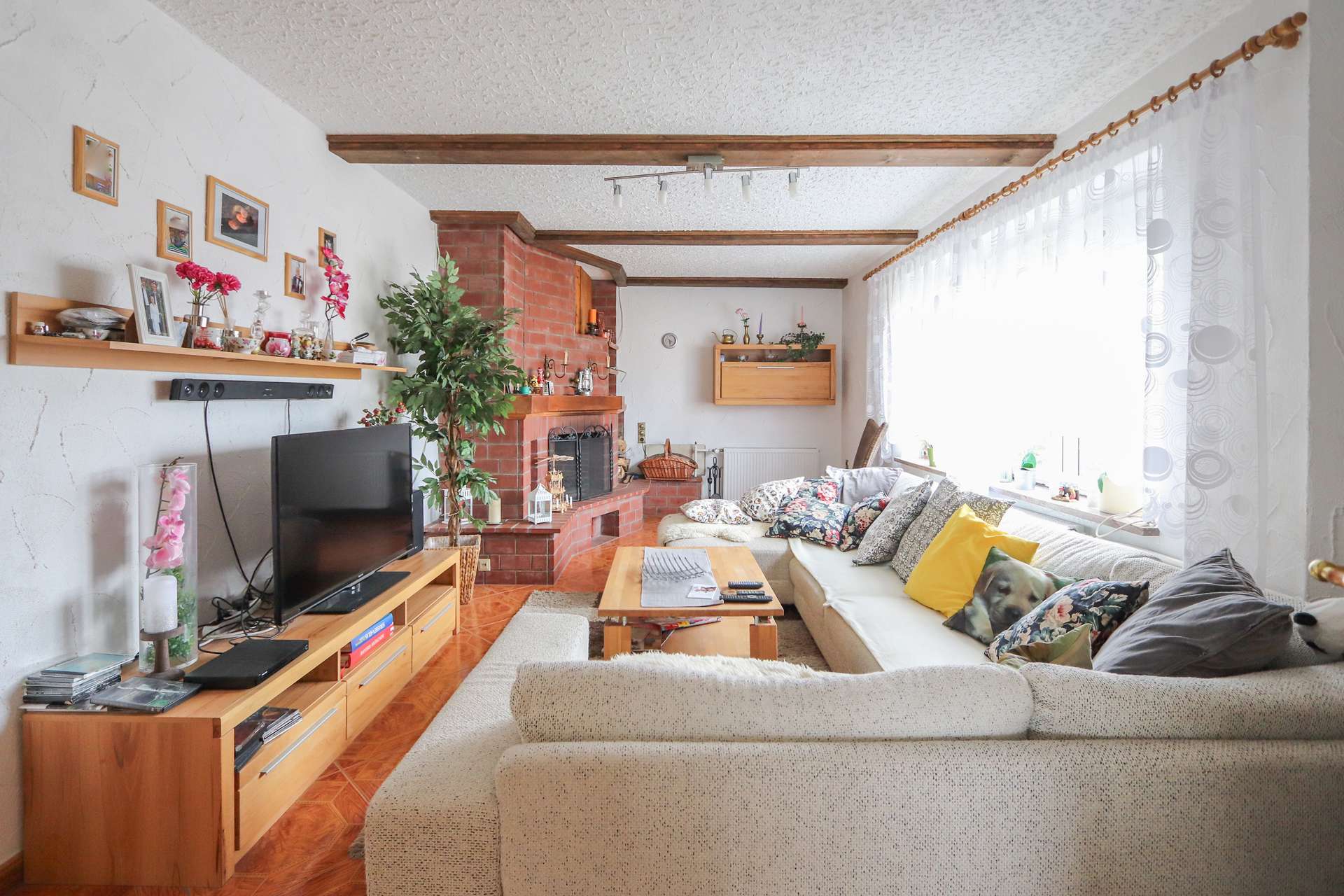- Kamin im Wohnzimmer