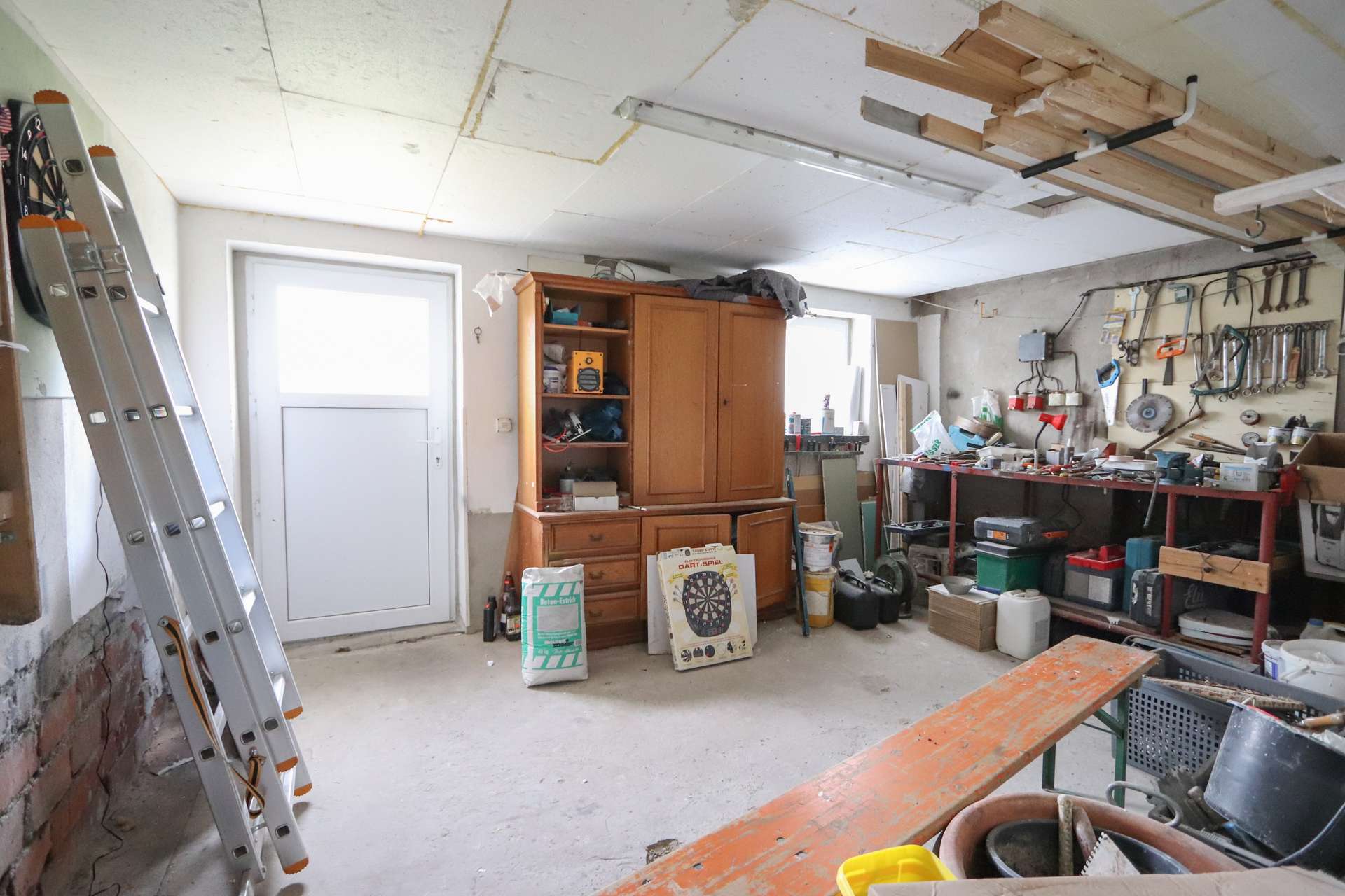 Das Kellergeschoss beherbergt einen Werkstattraum mit Ausgang zum Garten sowie 2 Lagerräume und den Heizungsraum. Hier befindet sich die Ölheizung, welche erst vor 4 Jahren erneuert wurde. Die Außenwände wurden bereits neu abgedichtet. Ebenfalls erneuert wurden im Jahr 2015 bereits die Entwässerung sowie die Wasserleitungen.
