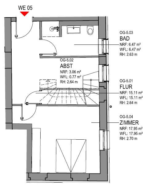 * angenehme Raumhöhen von ca. 2,62 m in der unteren Ebene und ca. 2,75 m in der oberen Ebene