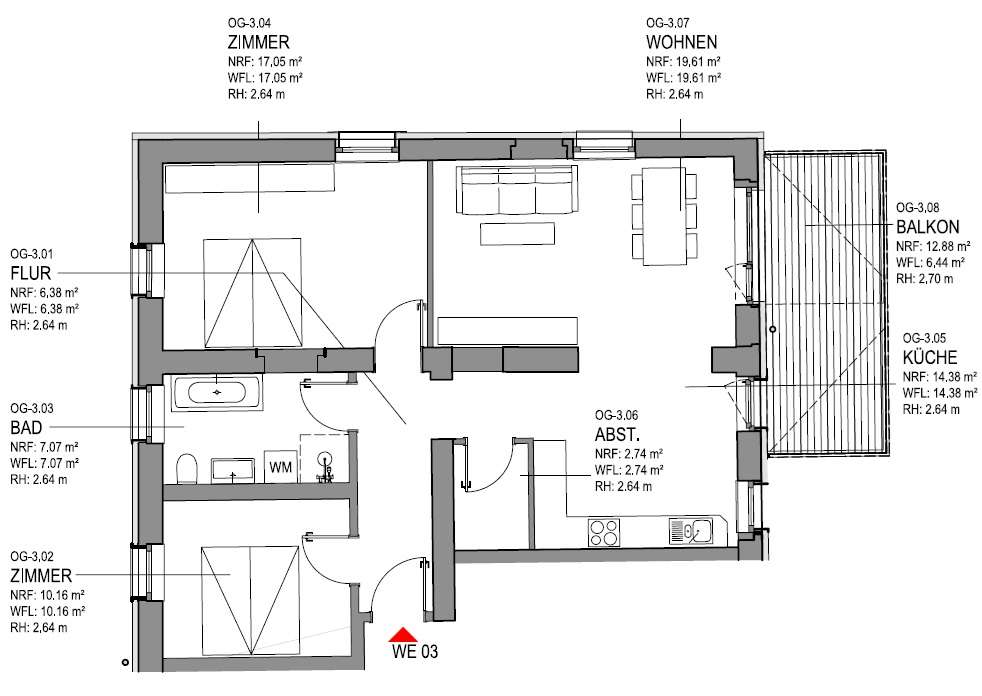 - Tageslichtbad mit Dusche, Wanne, WM-Anschluss