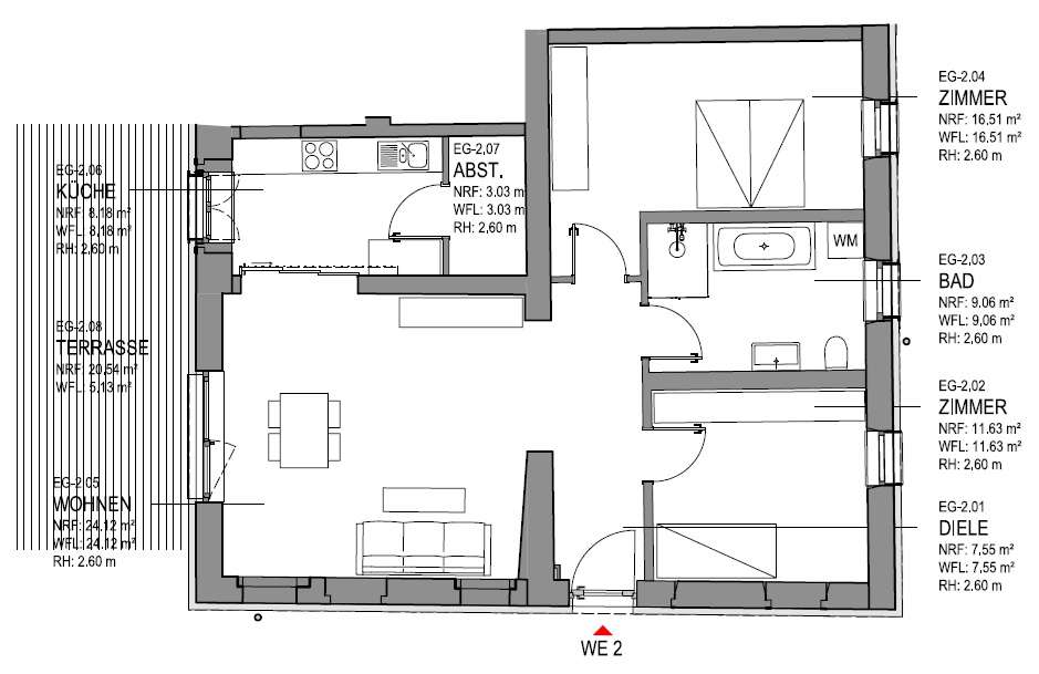 - Tageslichtbad mit Dusche, Wanne, WM-Anschluss