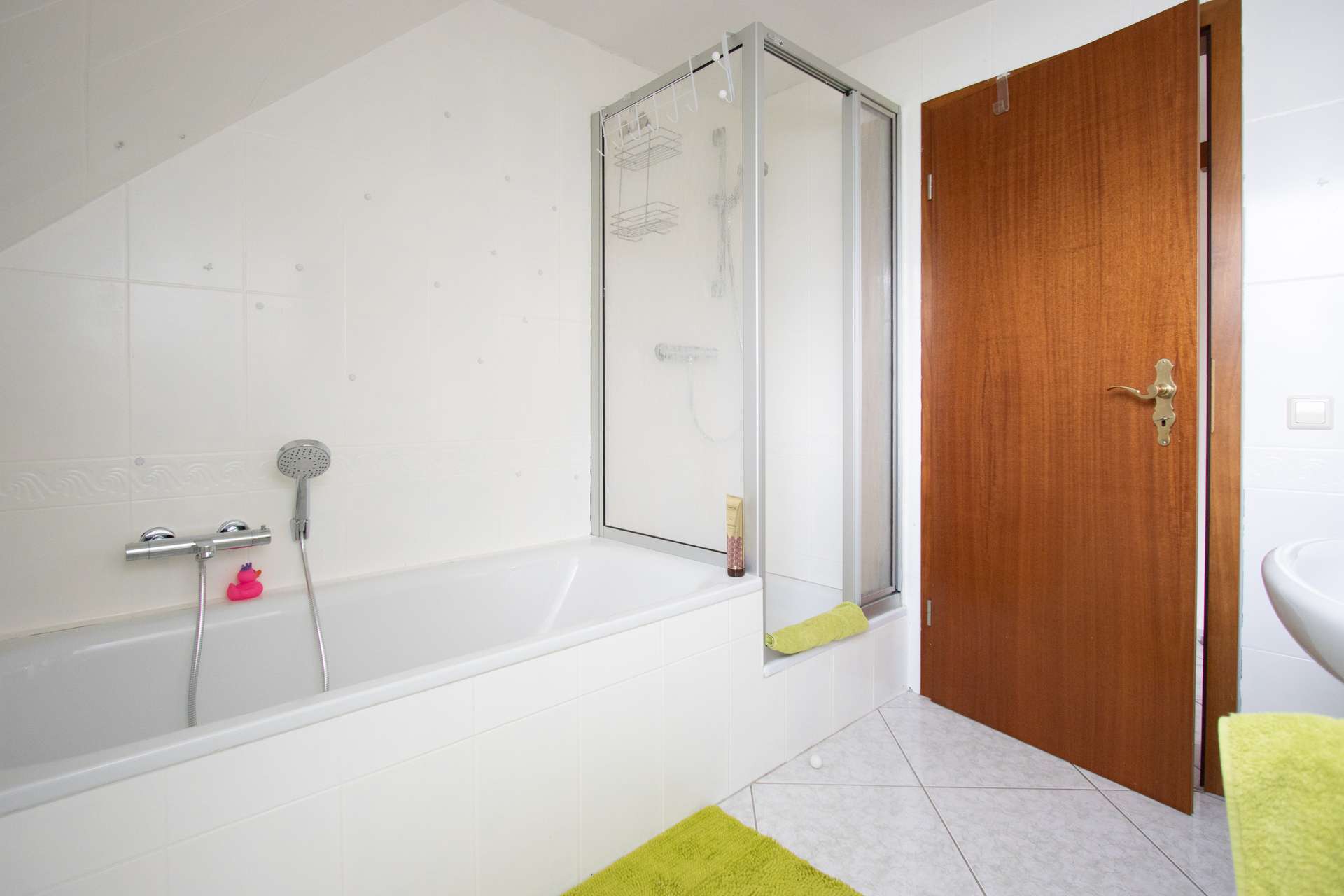 Das Dachgeschoss beherbergt 3 weitere geräumige Zimmer sowie einen Raum, der mit Küchenanschlüssen ausgestattet ist und ein zweites Badezimmer mit Wanne und Dusche. Zwei dieser Zimmer sind derzeit vorbereitet für das Verlegen eines neuen Bodenbelages und einer neuen Wandbeschichtung. Bei Bedarf kann das Dachgeschoss als Einliegerwohnung genutzt werden. Des Weiteren gibt es hier noch einen Balkon mit Westausrichtung, der einen schönen Ausblick in die Umgebung bietet.