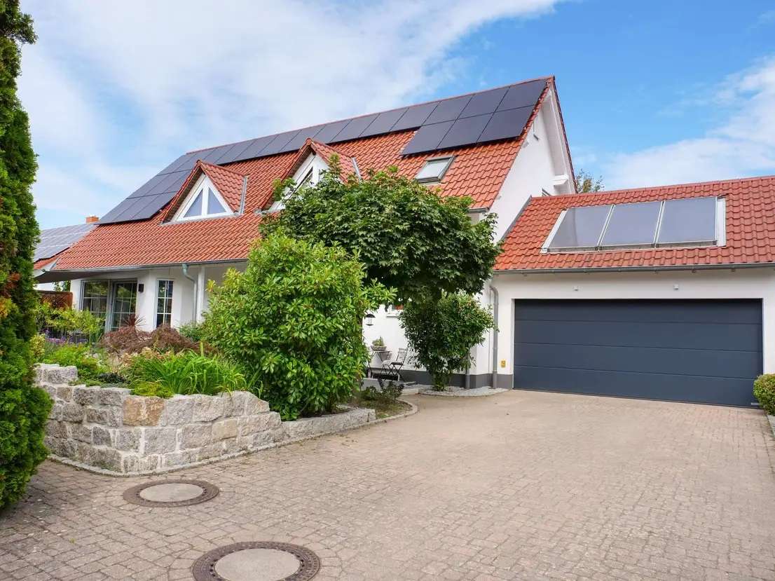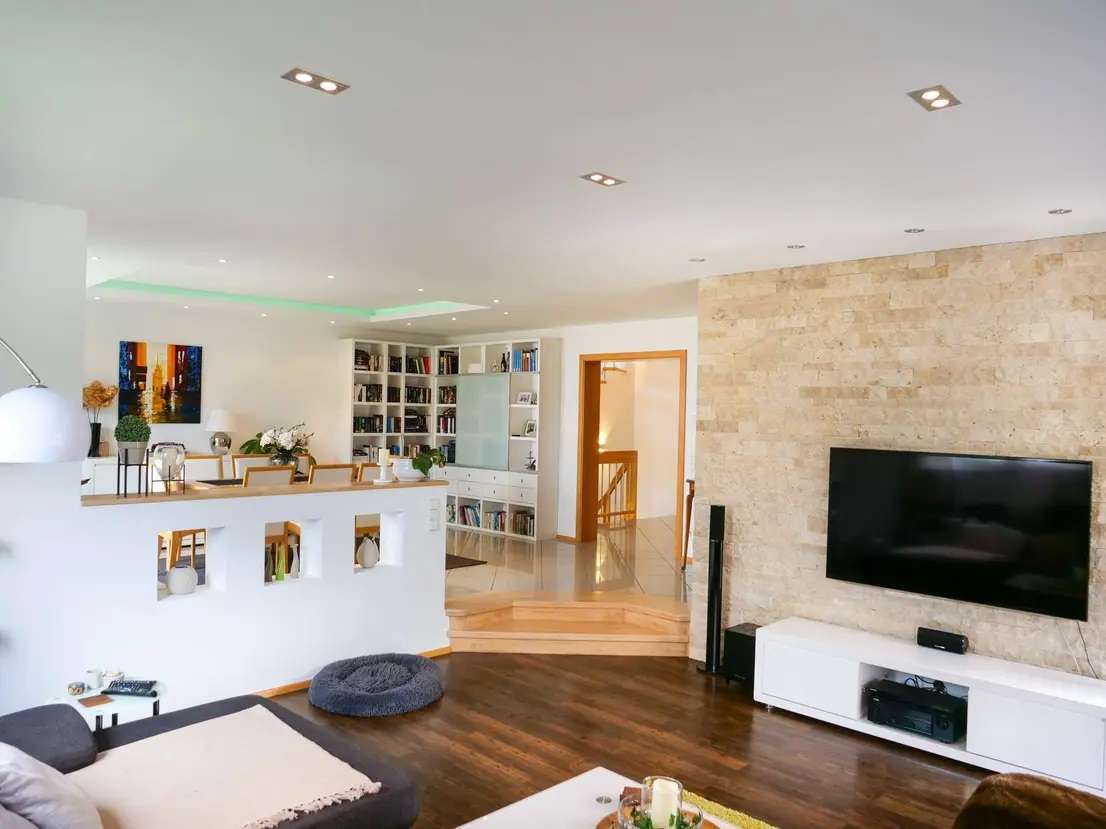 Das Haus ist auf 3 Etagen aufgeteilt und verfügt über eine Doppelgarage sowie einen Außenstellplatz. Im Keller befinden sich ein Abstellraum, ein Gäste-WC, sowie ein Gemeinschaftsraum und Büro. Die Einbauküche ist im Kaufpreis enthalten.