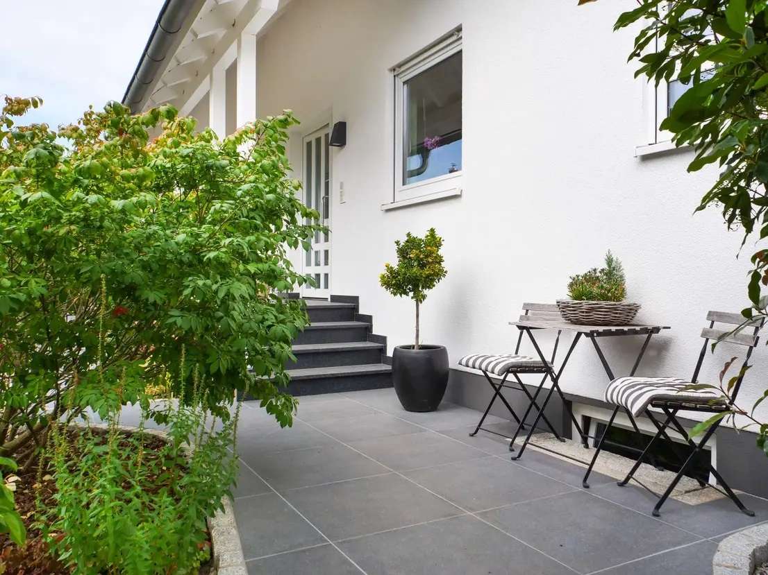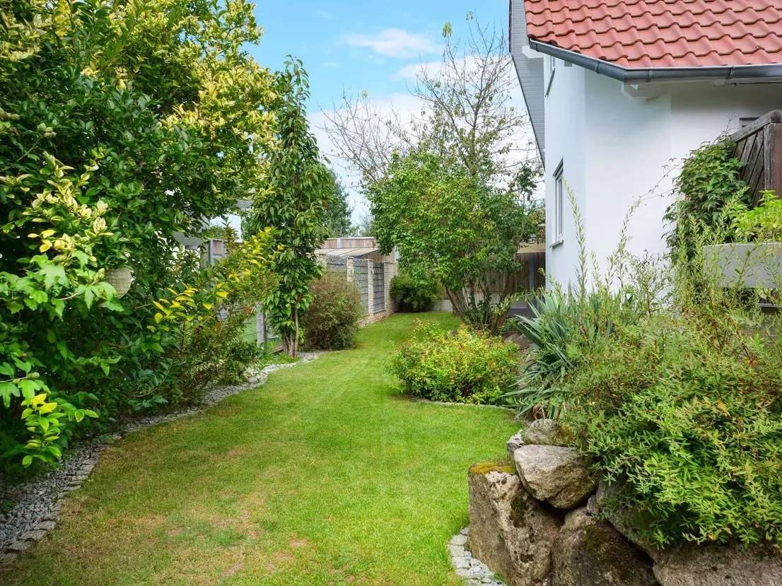 Ein weiteres Highlight ist der gepflegte und aufwändig gestaltete Garten, der zum Entspannen und Verweilen einlädt. Der Teich im vorderen Teil des Gartens sorgt für eine entspannende Atmosphäre.