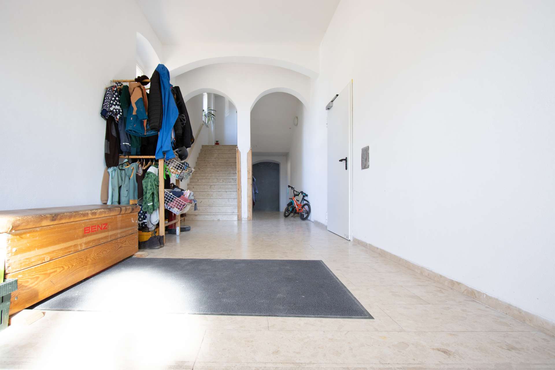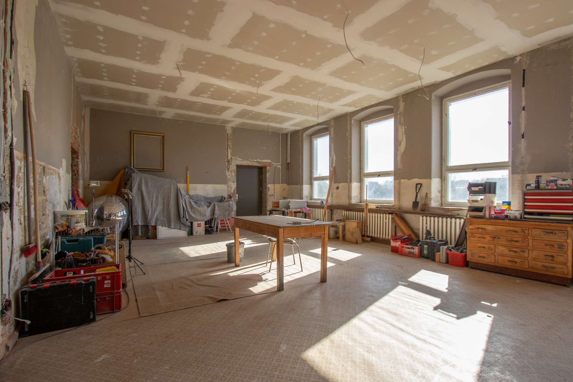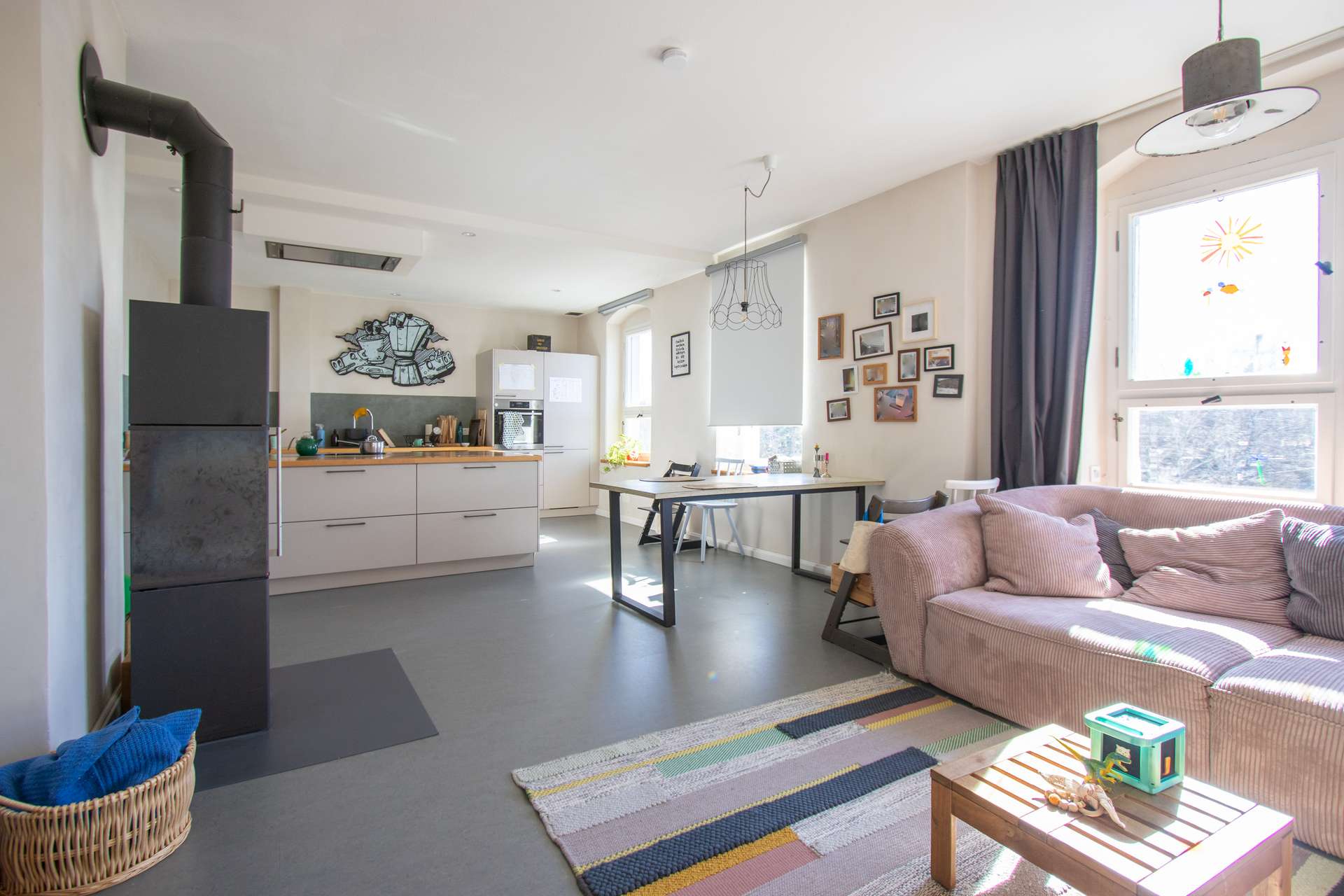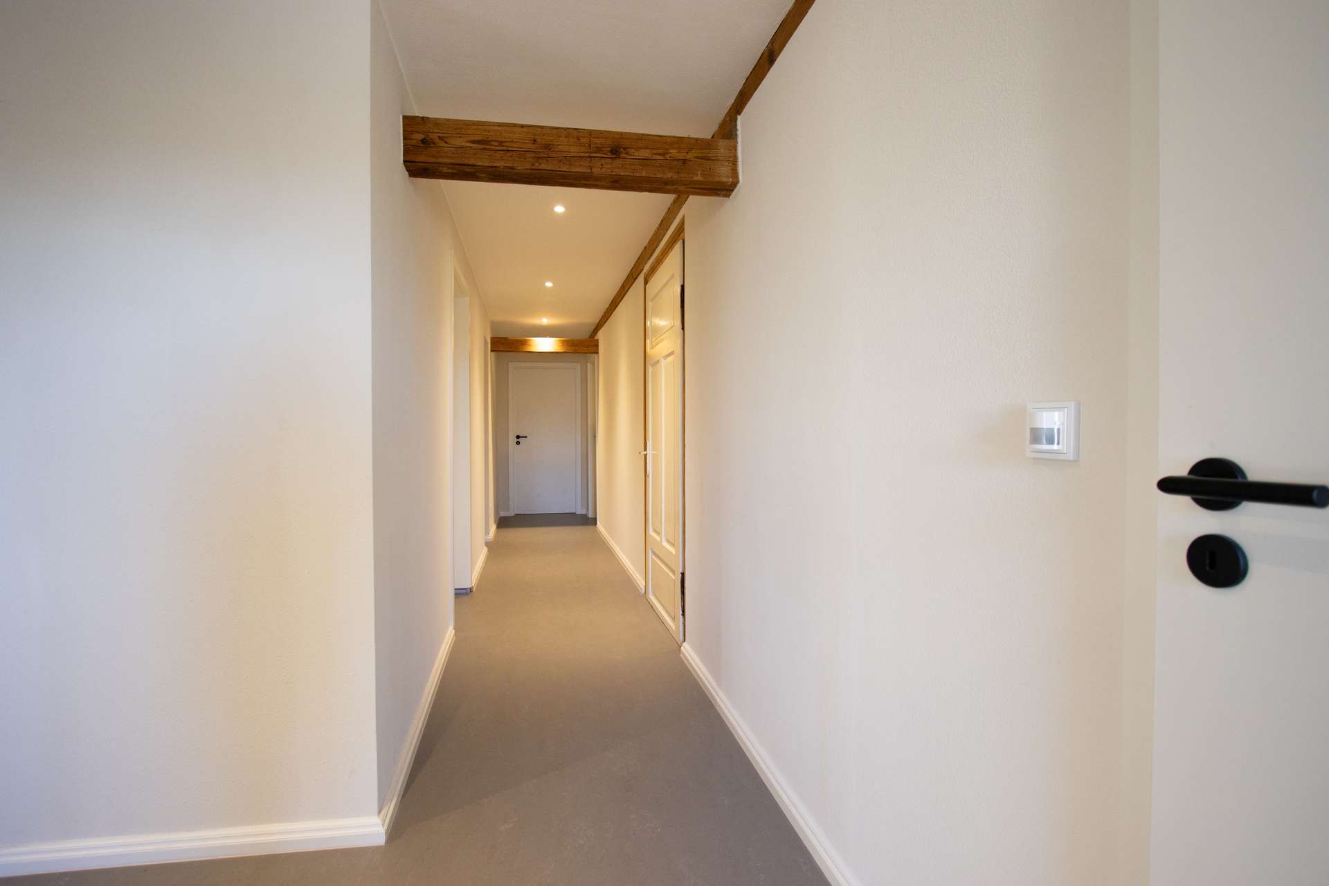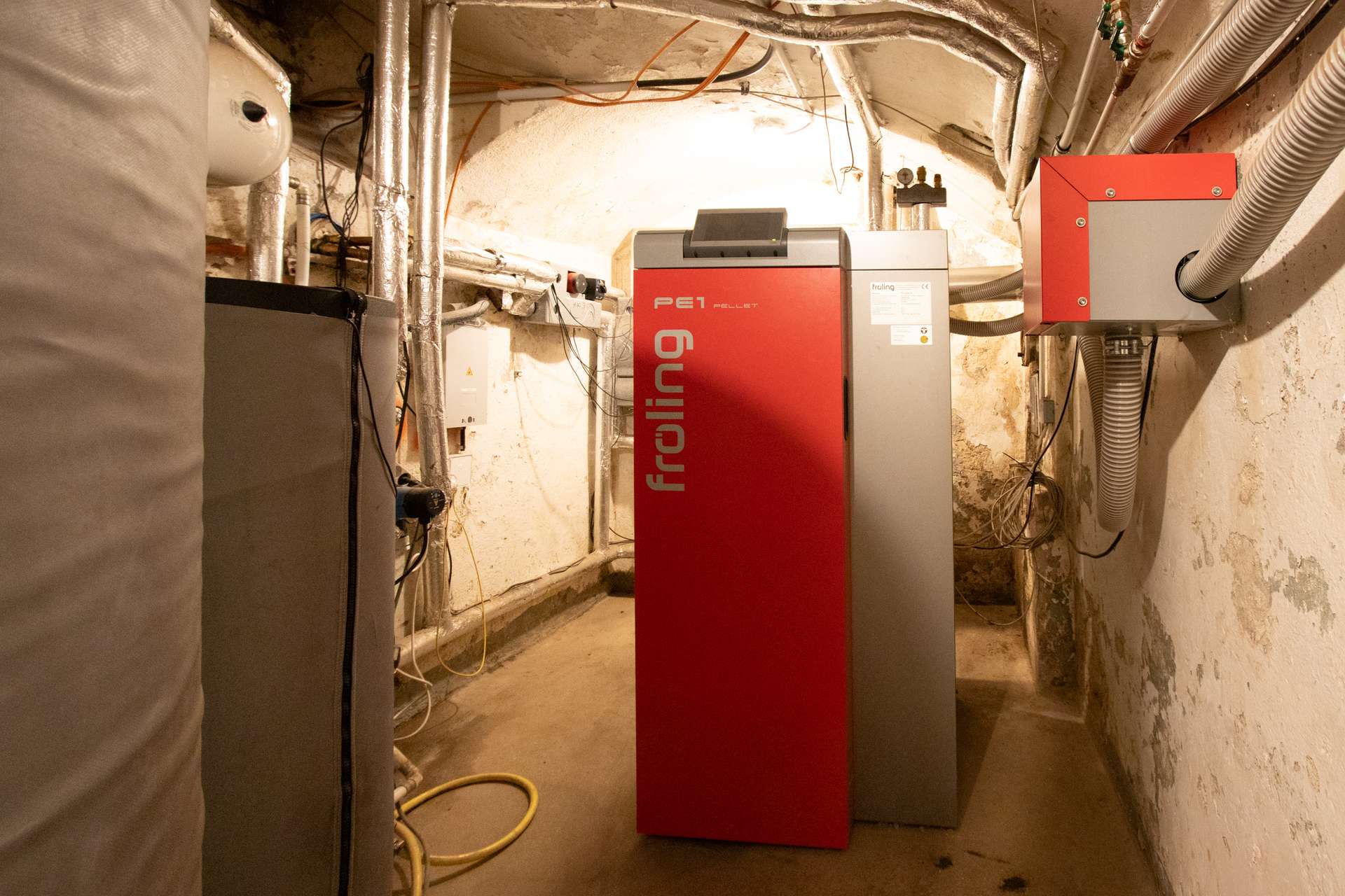 Die denkmalgerechte Sanierung erfolgte unter Berücksichtigung aktueller Brandschutzanforderungen und umfasste u.a. eine neue statische Ertüchtigung, moderne Heizungs- und Sanitärsysteme sowie eine komplett neue Elektroinstallation. Eine Pelletheizung mit zwei Pufferspeichern sorgt für eine effiziente und umweltfreundliche Wärmeversorgung. Dezentrale Lüftungsgeräte im Obergeschoss sichern stets ein optimales Raumklima zu. Jedes Detail wurde sorgfältig geplant, um den historischen Charme des Gebäudes zu bewahren und gleichzeitig modernen Wohnkomfort zu bieten.
