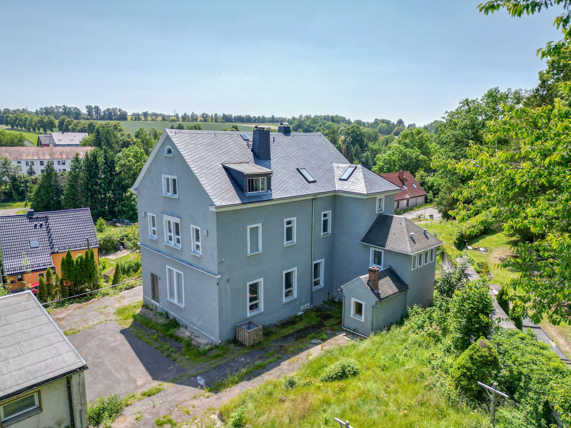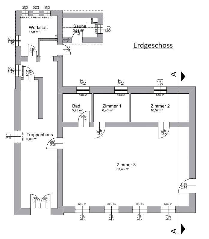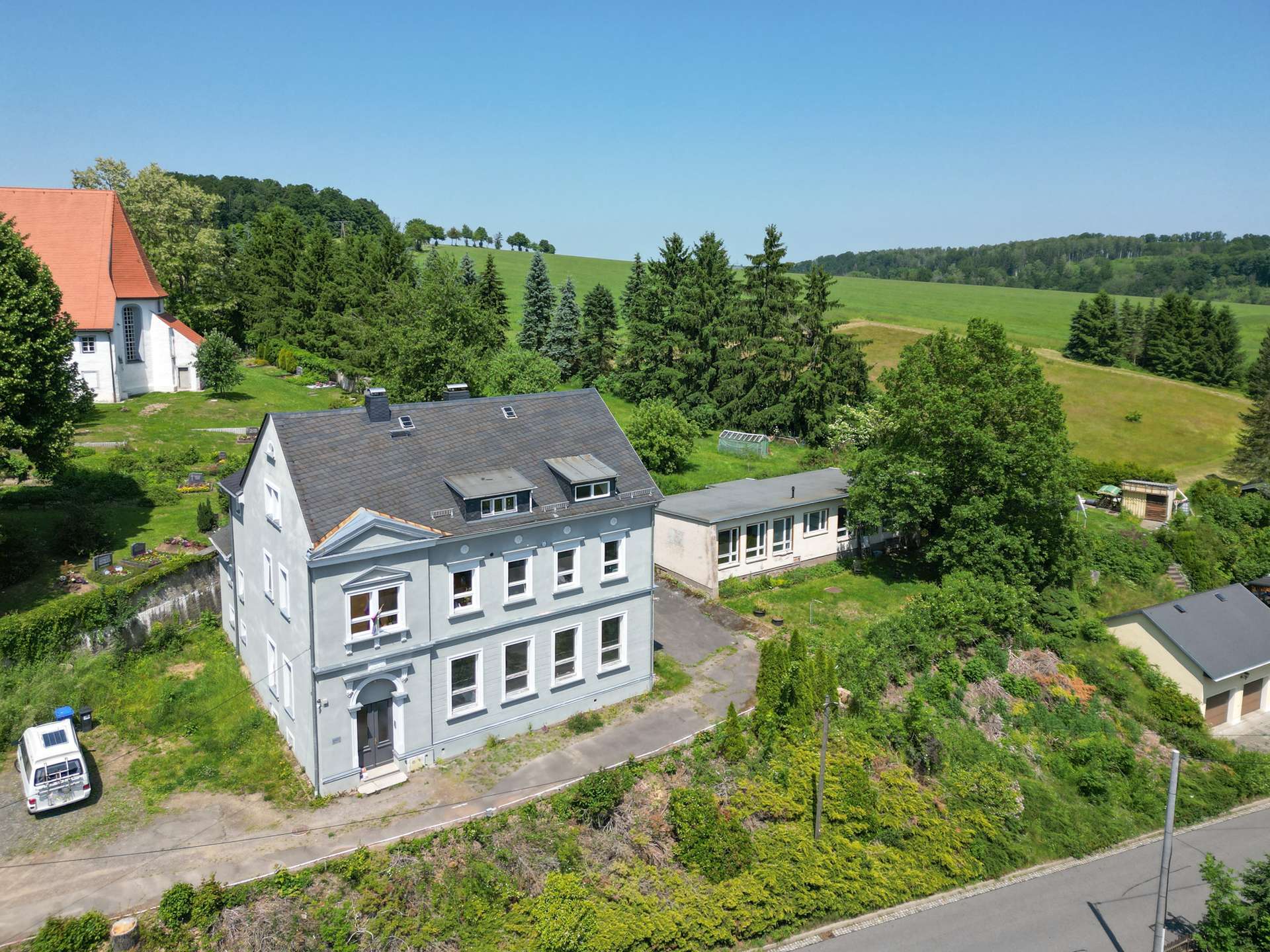 Weitere Highlights sind die Sauna im kleinen Anbau hinter dem Haus sowie die Ausbaureserven im Erdgeschoss und im Nebengebäude. Das 90 m² große Erdgeschoss kann noch nach eigenen Vorstellungen ausgebaut und gestaltet werden und bietet vielfältige Nutzungsmöglichkeiten, z.B. als Werkstatt, Atelier oder Fitnessraum. Im Nebengebäude befanden sich früher 2 Klassenzimmer mit jeweils ca. 40 m² Fläche. Hier haben Sie zusätzliches Potenzial für verschiedene Nutzungen, wie z.B. als Gästehaus, Büro oder Hobbyraum.