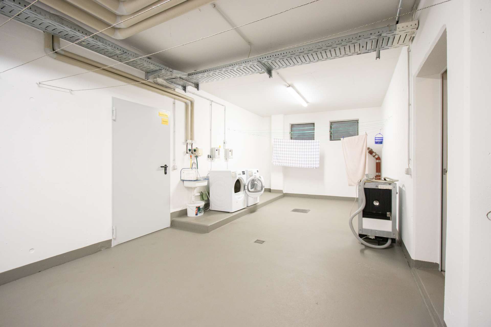 Für Stauraum sorgt ein geräumiges Kellerabteil. Zur Wohnung gehört zudem ein PKW-Außenstellplatz, der die lange Parkplatzsuche erspart. Zur gemeinschaftlichen Nutzung steht den Hausbewohnern ein Trockenraum zur Verfügung.