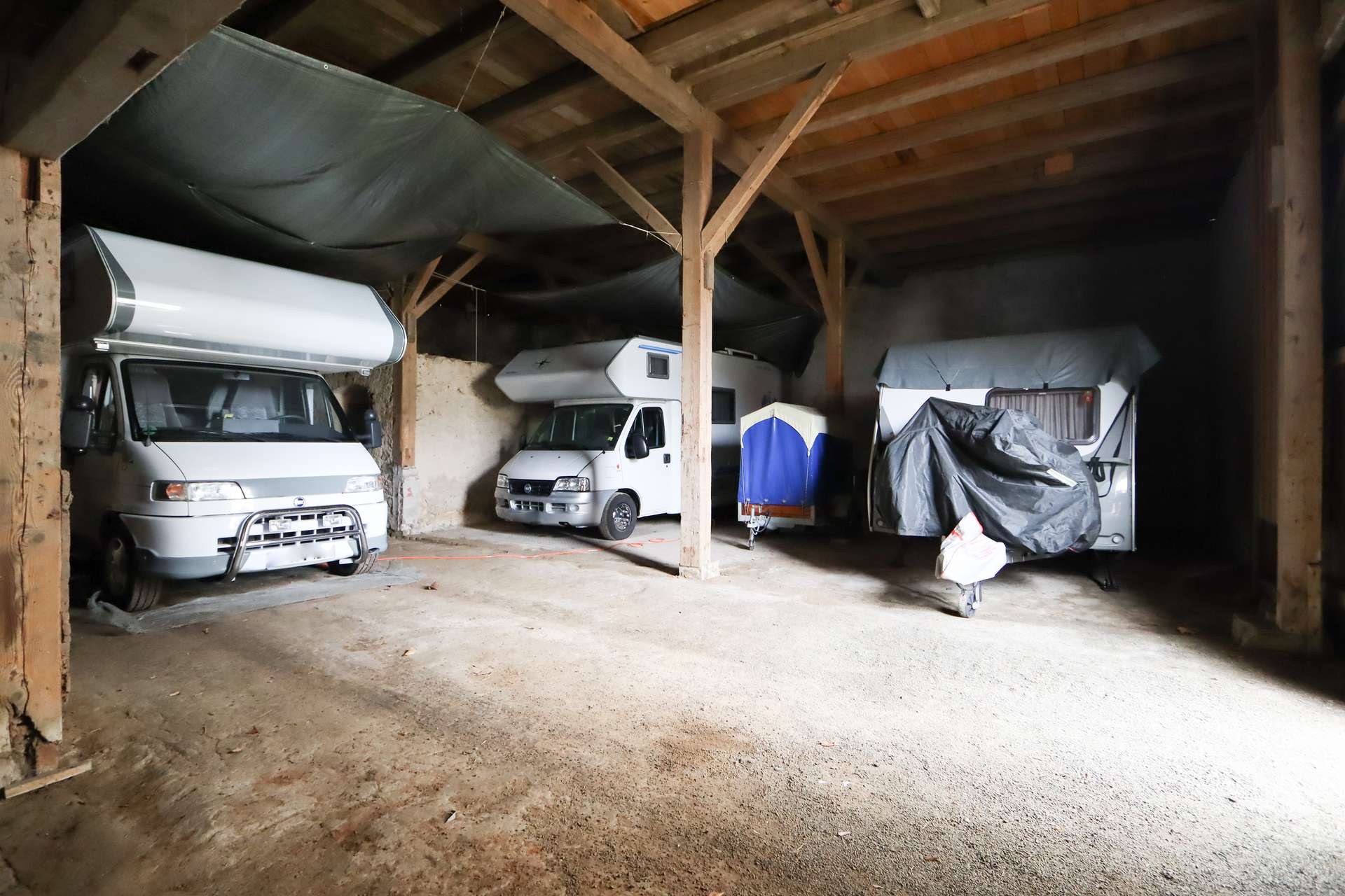 Die südliche und westliche Scheune dienten zuletzt u.a. als Unterstellmöglichkeit für Wohnmobile und Boote. Die Zufahrt auch in die oberen Zwischenebenen ist aufgrund einer Böschung im rückwärtigen Bereich und durch die großen Tore problemlos möglich.