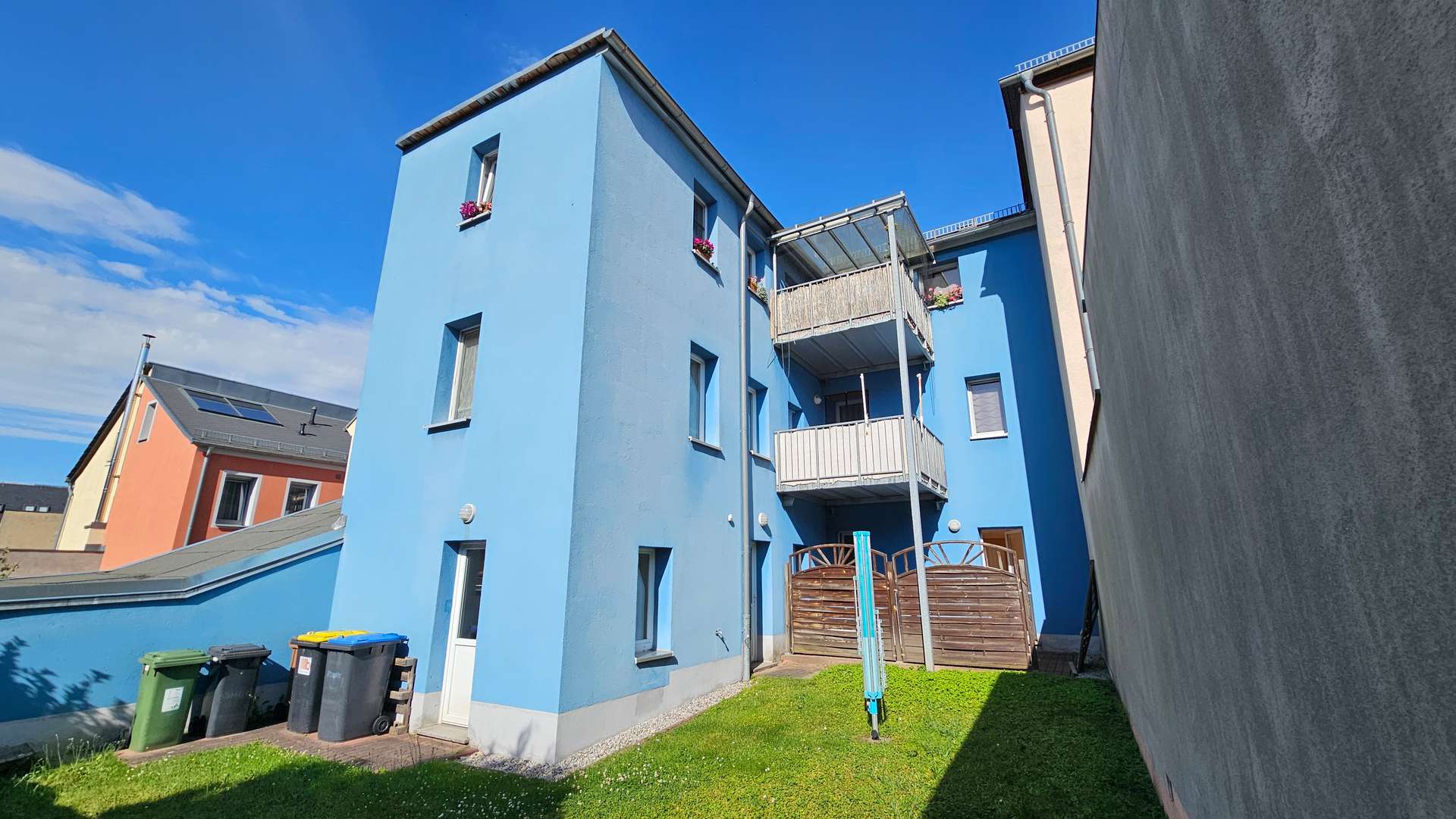 Das Haus umfasst 3 Wohneinheiten. Bei der Einheit im Erdgeschoss handelt es sich um eine frisch renovierte kleine 2-Raumwohnung. Sie ist mit einem Tageslichtbad mit Dusche ausgestattet und bietet vom Schlafzimmer aus Zugang zu einer großen Terrasse.
