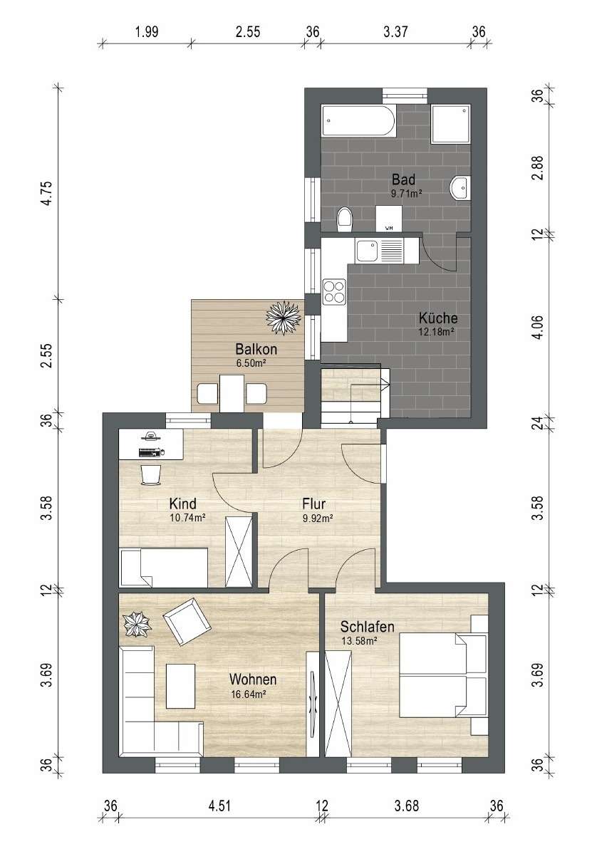 Im 1. und 2. Obergeschoss befinden sich jeweils 2 schön geschnittene 3-Raumwohnungen.