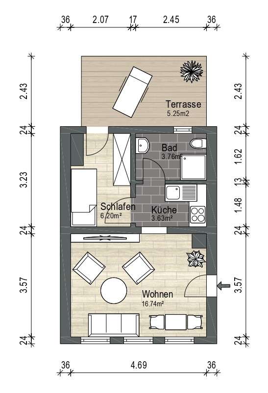 - 3 Wohneinheiten (1 x 2-RWE, 2 x 3-RWE)
