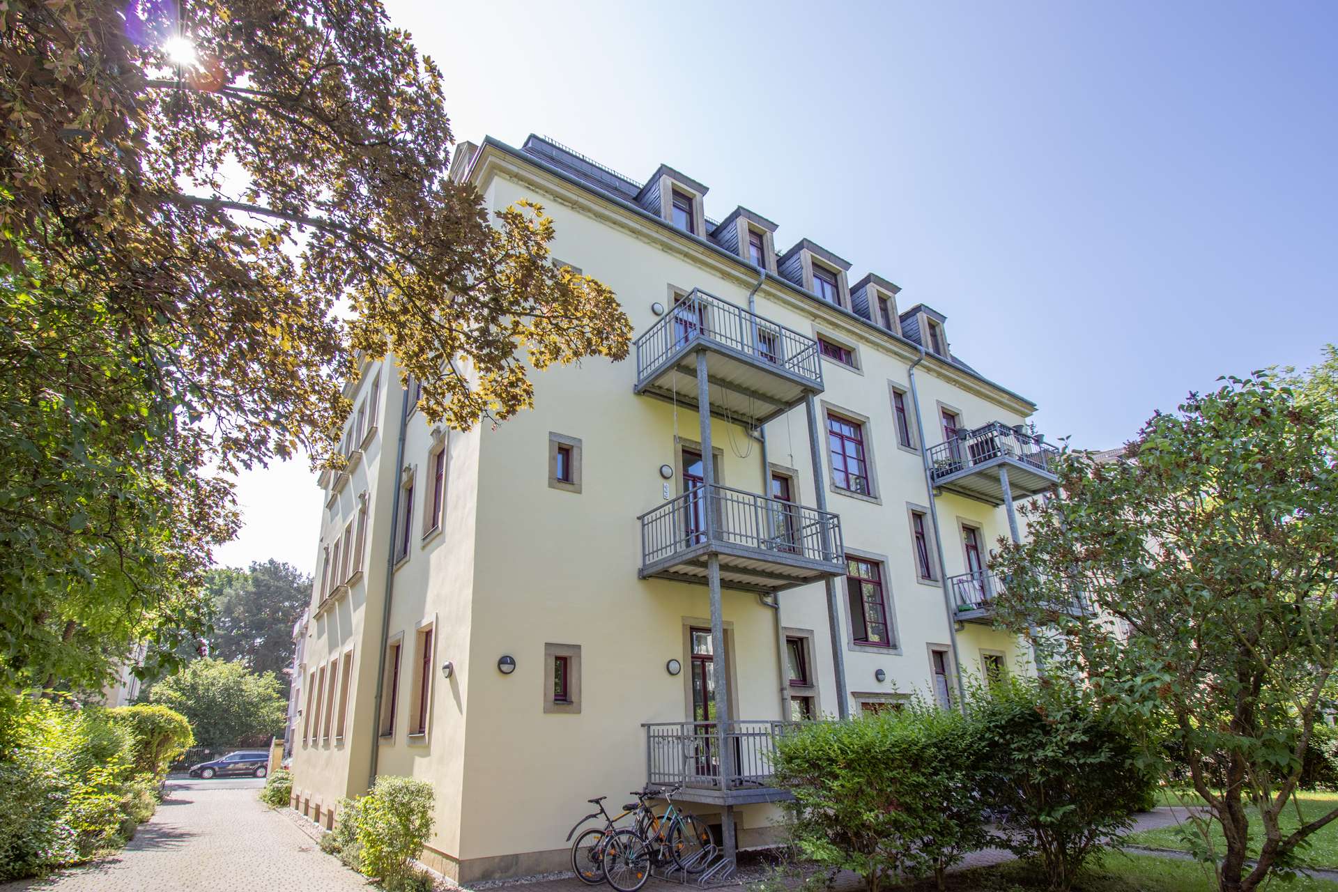 Die Infrastruktur ist hervorragend: In fußläufiger Entfernung befinden sich zahlreiche Einkaufsmöglichkeiten des täglichen Bedarfs – darunter Supermärkte, Bäckereien, Drogerien sowie kleine Feinkostläden. Für Genießer bietet die Umgebung eine reiche Auswahl an charmanten Cafés, stilvollen Weinbars und gemütlichen Restaurants. Ob italienische Trattoria, Sushi-Bar oder klassische Dresdner Küche – hier ist für jeden Geschmack etwas dabei.